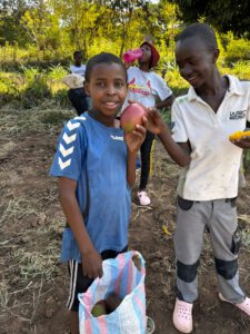 Da gerade in Kenia und auf der Farm von Boniface Mango Saison ist wurden am Sonntag zum Abschluss die ersten Mangos geerntet. Alle Kinder und natürlich auch wir haben uns mit Säcken und Tüten ausgestattet und sind gemeinsam den kurzen Weg bis zu unserer Farm spaziert. Dort angekommen nahm uns Boniface schon in Empfang, um die Aktion zu begleiten. Er ist auf die Bäume geklettert, um die Mangos vom Baum zu schütteln oder mit einer langen Stange runter zu holen. Daraufhin haben sich alle Kinder auf die Mangos gestürzt, um sie einzupacken und natürlich auch einer ausgiebigen Qualitätskontrolle zu unterziehen. Eine tolle und sehr leckere Erfahrung.